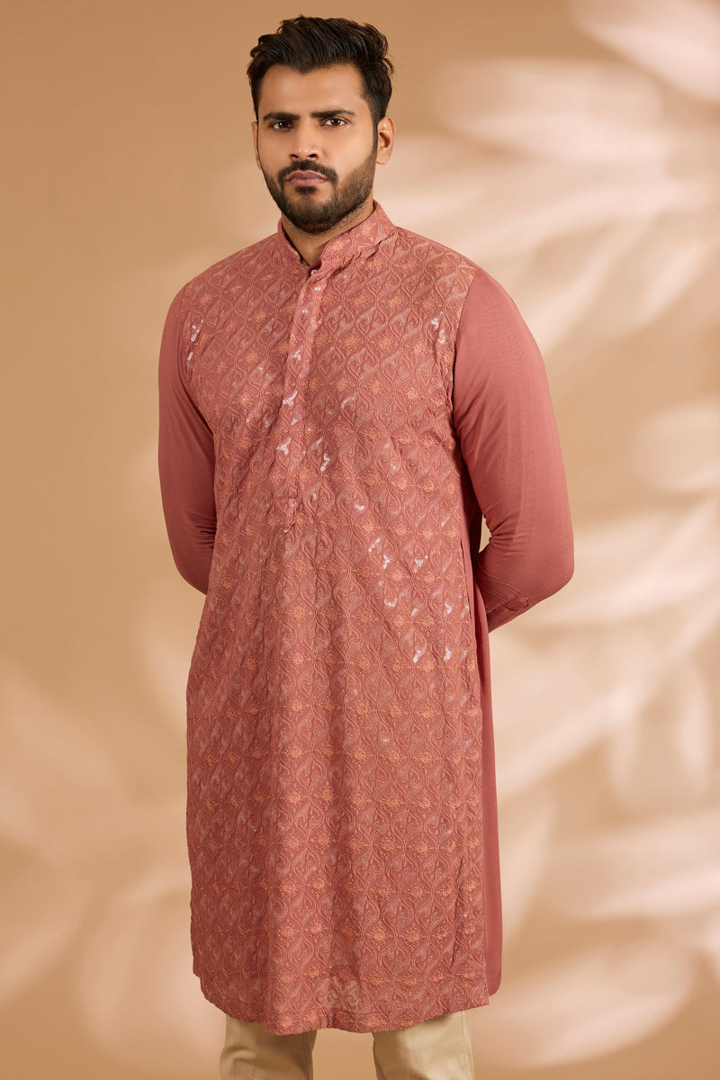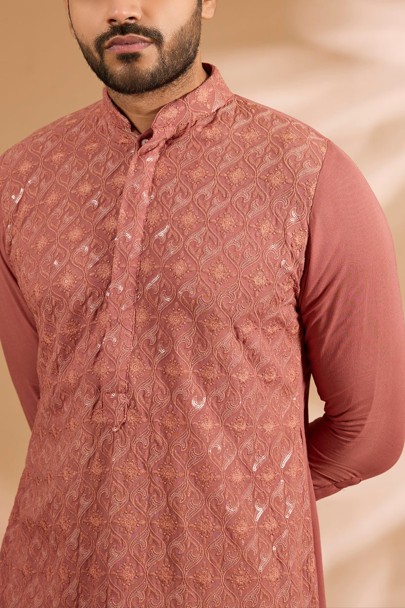 Burnt Orange Georgette Sequin & Thread Jaal Embroidered Kurta Set
